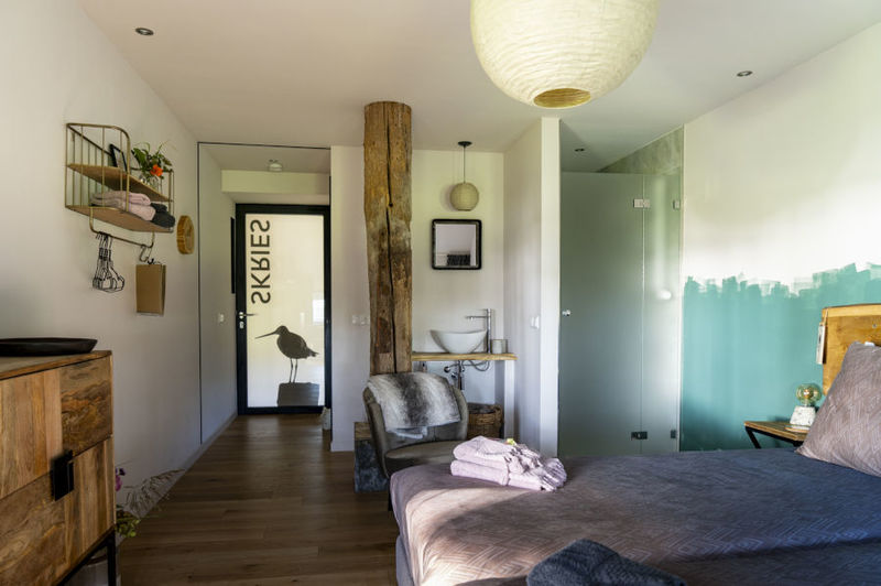 De zilte lucht van de Waddenzee, oneindige akkers, eindeloos veel vogels en overweldigende vergezichten. En dan, op een unieke terp, prijkt daar deze oude monumentale boerderij.  Prachtig verbouwd tot B&B met drie prachtige luxe B&B-suites met uitstekende faciliteiten. Alle drie verschillend maar zonder uitzondering sfeervol en uitgerust met goede bedden, een zitje, koffie en thee en een badkamer met inloop regendouche, toilet, wastafel, badjassen en föhn.