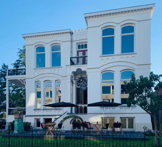 HistoryIn 1902 werd opdracht gegeven voor de bouw van een villa die later bekend zou worden als Huize Stella. De villa werd in 1918 gekocht door Frits van Puijenbroek. Frits ontmoette, als handelsreiziger op een reis naar Roemenië, de Wit-Russische Stella Ionescu-Dimitriu en nam haar mee. Maar trouwen bleek nog niet zo makkelijk omdat Stella geen papieren had om mee aan te tonen dat zij Rooms Katholiek was. Pas nadat Frits beloofde om zijn Huize Stella aan de kerk na te laten, werd het huwelijk voltrokken. Tot op de dag van vandaag is de villa een bekend pand in Goirle en omgeving, voornamelijk doordat het huis, dat in Jugendstil is gebouwd, zo goed bewaard is gebleven. In 2018 zag Marleen Sala dat het huis, waar zij als klein kind nog gespeeld had, te koop stond. Zij ondernam meteen actie. Uiteindelijk lukte het haar om de gemeente te overtuigen dat een grondige renovatie om er een hotel in te beginnen een goede bestemming was en die renovatie startte begin 2019. Na een lange periode van verbouwen, waarbij veel oude details in ere zijn hersteld, opende Stella Suites haar deuren. Binnen zijn de prachtige oude entree en bijzondere details als glas-in-lood ramen gecombineerd met eigentijds design en een luxe afwerking. Een bijzonder en uniek boetiek hotel dat het pand weer kleur geeft.