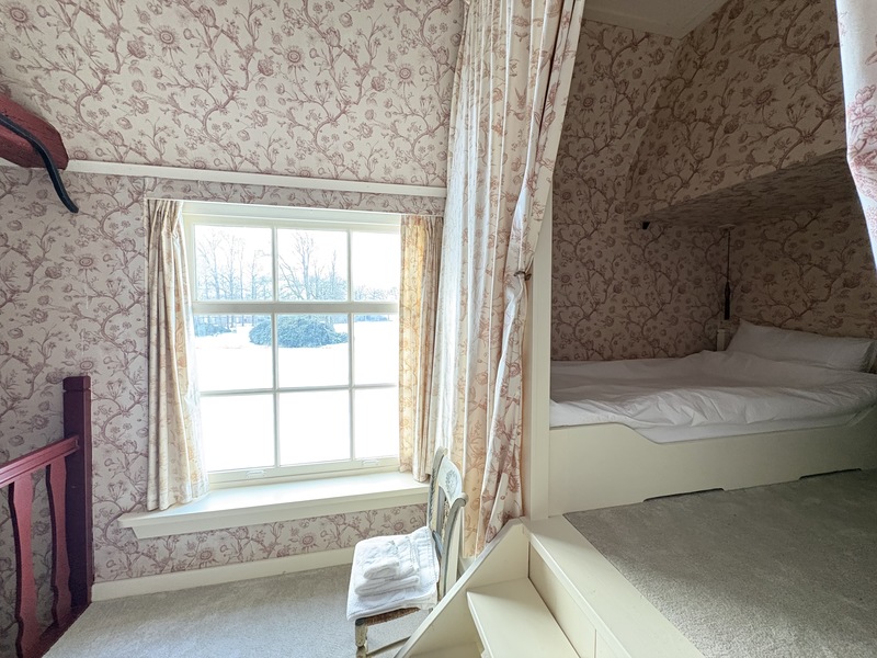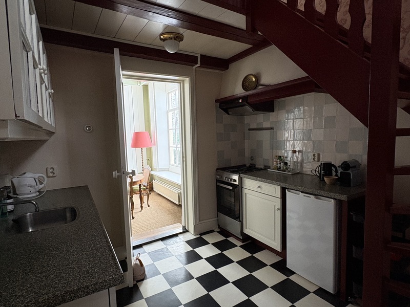 In the Koetshuis you are welcomed in the spacious hall that leads to the fully equipped kitchen and the spacious, bright living room with patio doors to the terrace. From the hall you also reach the downstairs bedroom with queen-size bed and private shower. The sunny private garden overlooks the castle with quinces and the moat where you can regularly see swans, storks and sometimes a kingfisher. Due to the water, the house is not suitable for children.