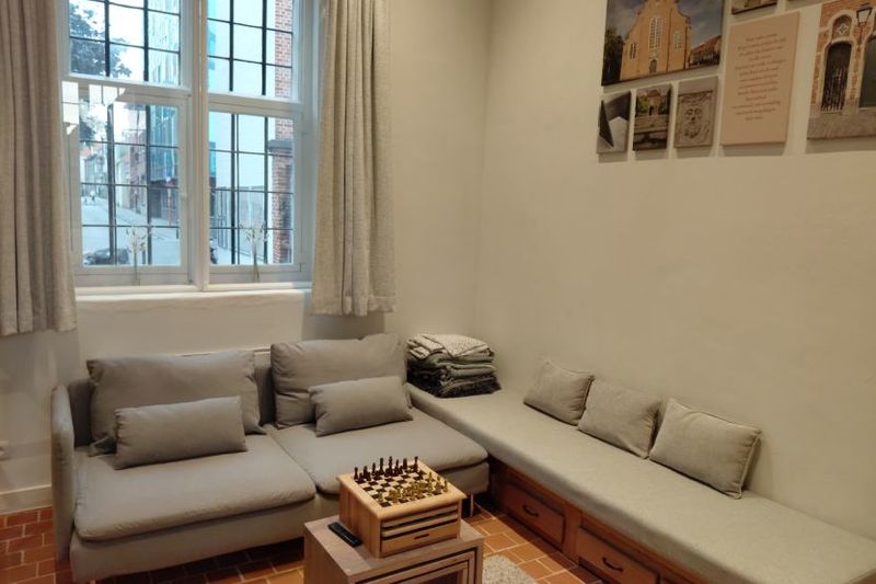 Kamer Grootjuffrouw is licht en warm en weerspiegelt de eenvoud en schoonheid van het Begijnhof - met subtiele verwijzingen naar de historische vrouwen die hier ooit woonden. Om het grote genieten compleet te maken, heb je hier je eigen terrasje.