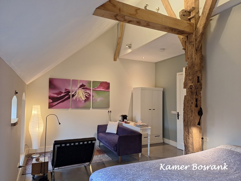 Henriëtte en Peter hebben drie prachtige kamers gecreëerd in een monumentale schuur. We werden zeer gastvrij ontvangen en kregen de zeer ruime en luxe ingerichte kamer 'Bosrank'. Het is heerlijk rustig in de omgeving en we sliepen als rozen! De volgende morgen hebben we lekker in de zon op een bankje in de tuin gezeten met een kopje koffie, voordat er een uitgebreid ontbijt aan ons voorgeschoteld werd. In de omgeving niet alleen museum MORE, maar ook ons reisdoel: ezelstal De Edelingen waar je met een ezeltje kunt wandelen.