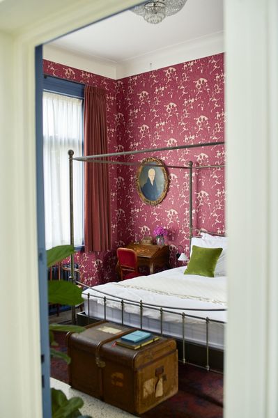 Er is hier slechts één gastensuite en die mag er dan ook zijn. Je suite is gevestigd in de voormalige praktijkruimte van dit oude doktershuis. Dat betekent dat het comfortabele messing hemelbed in de oude praktijkruimte staat en dat je doucht in de voormalige apotheek onder een honderd jaar oude koperen rainshower. Voor het zetten van een lekker kopje thee vind je alle benodigdheden in het oude laboratorium. Hier tref je ook een koelkast en inductiefornuis.